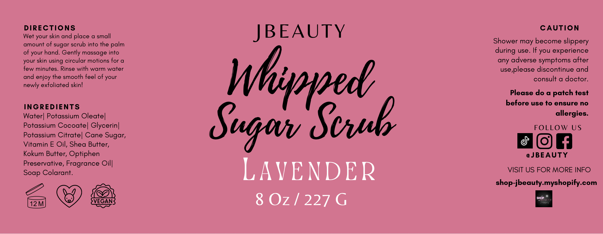 Water, Potassium Oleate, Potassium Cocoate, Glycerin, Potassium Citrate, Cane Sugar, Vitamin E Oil, Shea Butter, Kokum Butter, Optiphen (Preservative), Essential Oil, Mica.